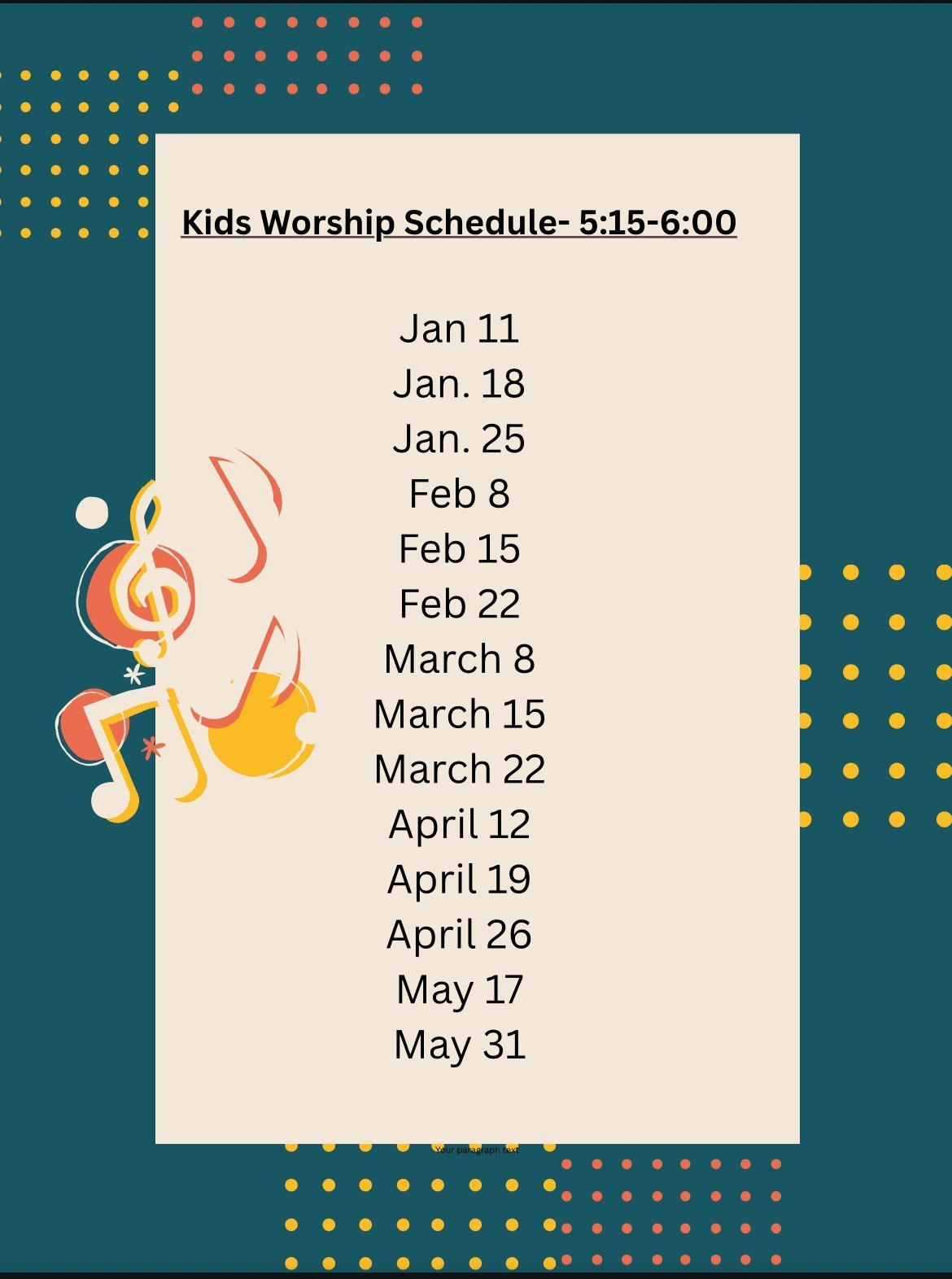 Join us for our spring semester of Kid's Worship Choir! Ages 4K - 5th grade!